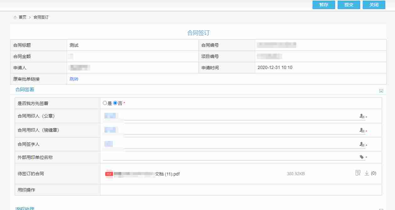 ■ 在合同管理系統(tǒng)中完成范本管理、合同起草、合同簽訂、合同履約狀態(tài)記錄、合同變更、合同歸檔,合同全生命周期管理。