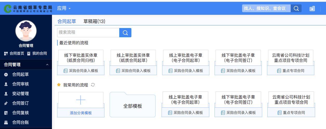 省煙草提出數(shù)字化轉(zhuǎn)型,其中合同管理的數(shù)字化是云南省煙草數(shù)字轉(zhuǎn)型的重要一環(huán)。線下合同簽訂耗時過長、無法滿足合同高效集中管理需求。