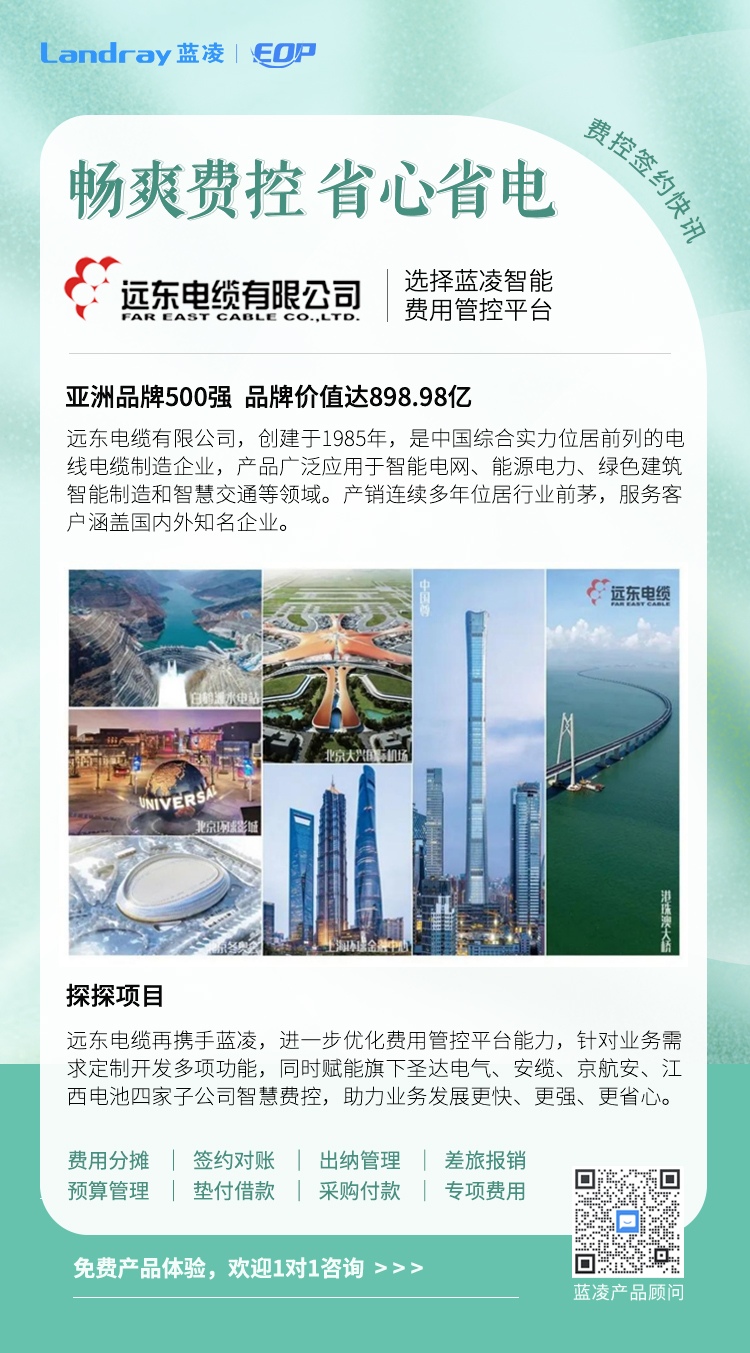 EKP近期,中國(guó)綜合實(shí)力位居前列的電線電纜制造企業(yè),遠(yuǎn)東電纜在與藍(lán)凌合作費(fèi)用管控一期項(xiàng)目的成功實(shí)踐基礎(chǔ)上,再次選擇藍(lán)凌,升級(jí)費(fèi)控平臺(tái)綜合能力,多方位助力業(yè)務(wù)發(fā)展。