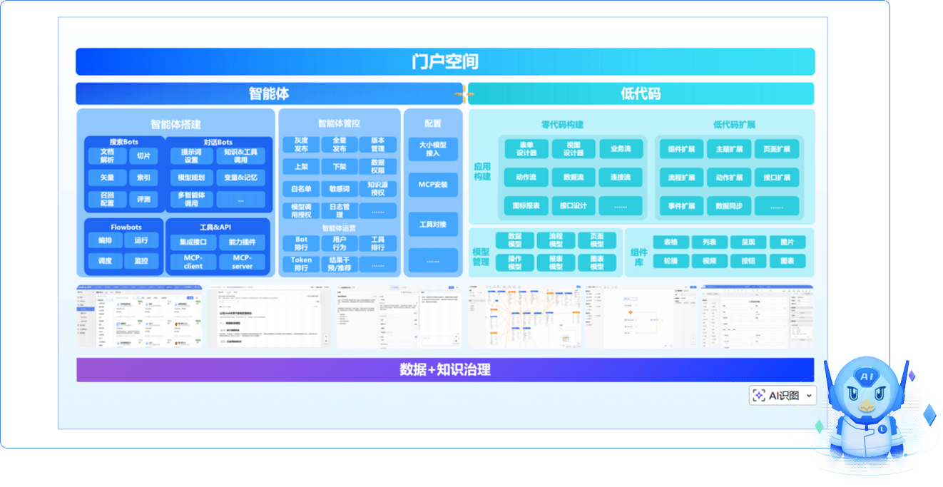 【門戶空間+知識(shí)中臺(tái)+流程中臺(tái)+智能體&低代碼】四件套,