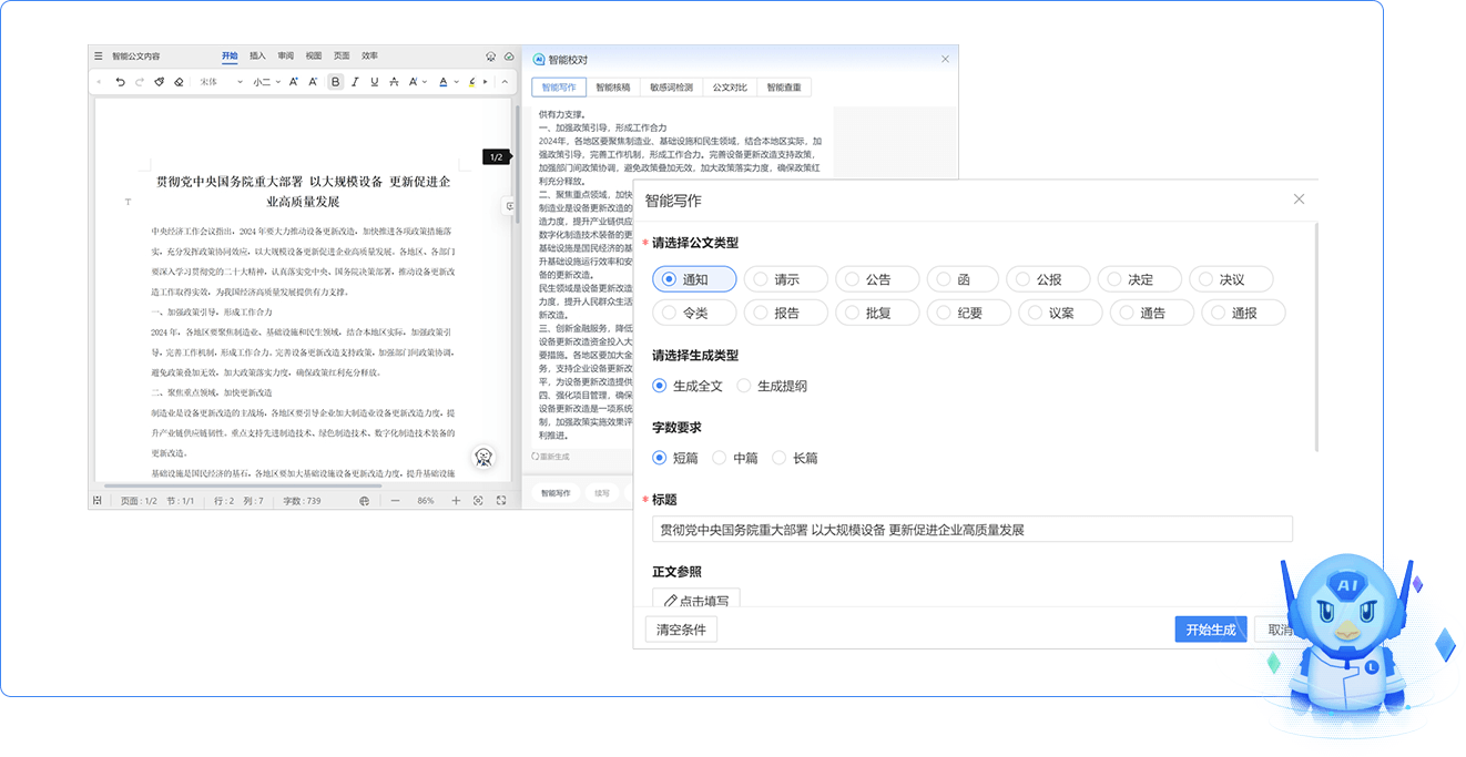 內(nèi)置全國百萬級公開公文數(shù)據(jù)庫,可按照部、省、市進行公文查重