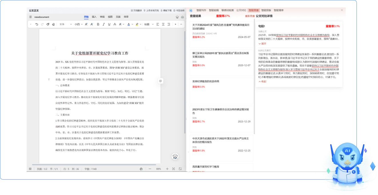 基于內(nèi)外部數(shù)據(jù)庫,支持對公文內(nèi)容的多維度查重。