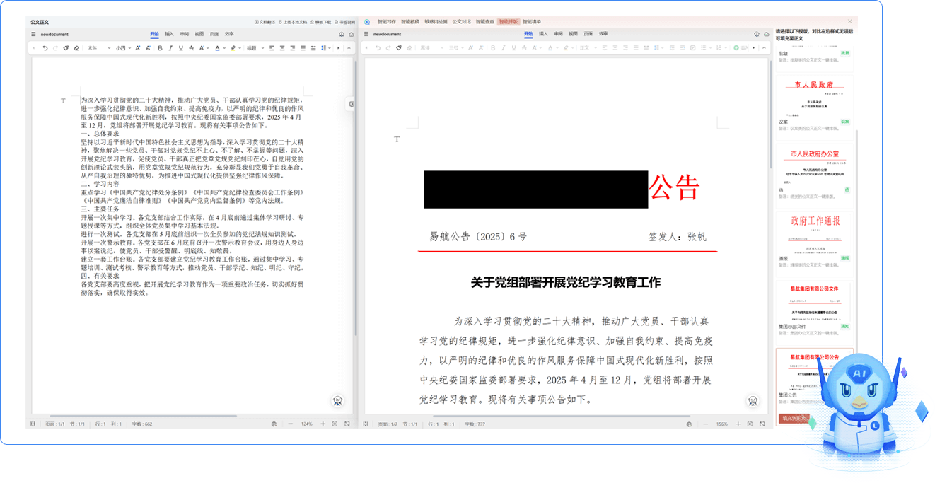根據(jù)內(nèi)置的國標15種公文文種和自定義的公文模版,依據(jù)海量模型一鍵排版自動實現(xiàn)行文格式,字體樣式,字體大小等規(guī)范自動排版,提升排版工作效率。