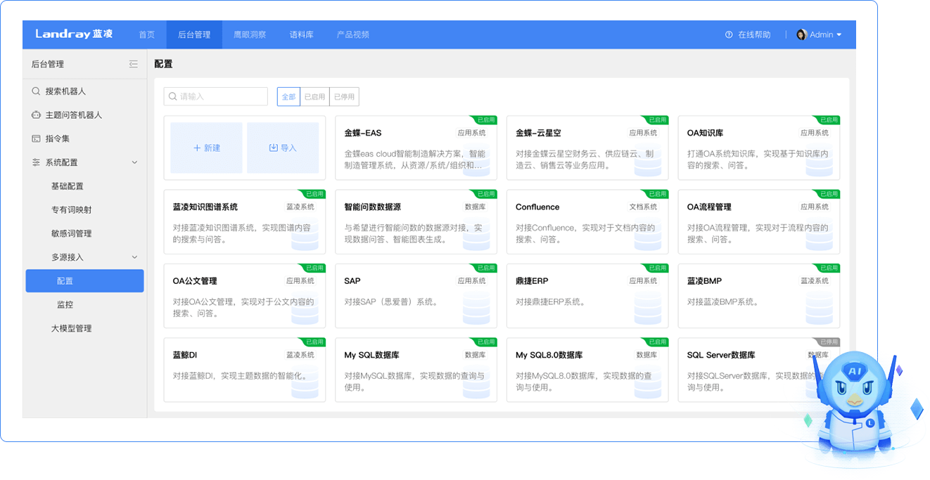 內(nèi)置常用知識源:內(nèi)置超過10種常見企業(yè)內(nèi)部知識源,并持續(xù)增加中。