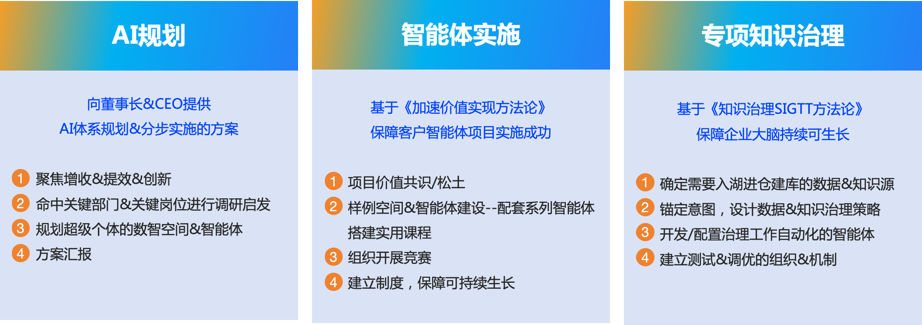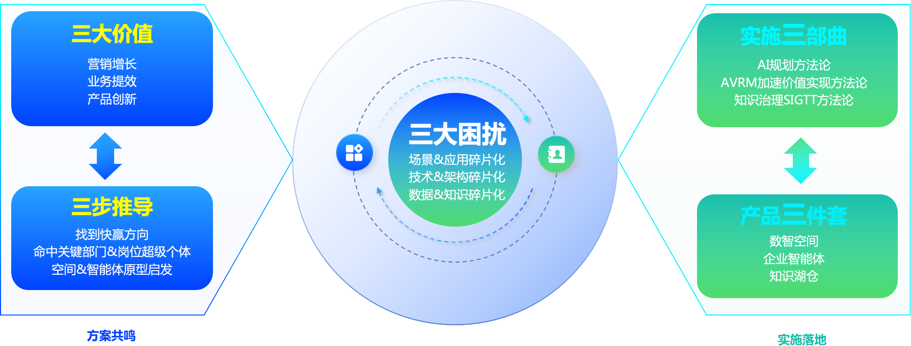 千行百業(yè)擁抱AI升級,面臨“場景碎片化,技術碎片化,知識碎片化”的難題。企業(yè)AI成功,解決三大“碎片化”難題,不僅需要聚焦三大價值(增長、提效、創(chuàng)新)+三步推導(找到快贏方向、命中關鍵部門&崗位超級個體、空間&智能體原型啟發(fā))的AI轉(zhuǎn)型規(guī)劃,也需要適配的產(chǎn)品三件套+實施三部曲。