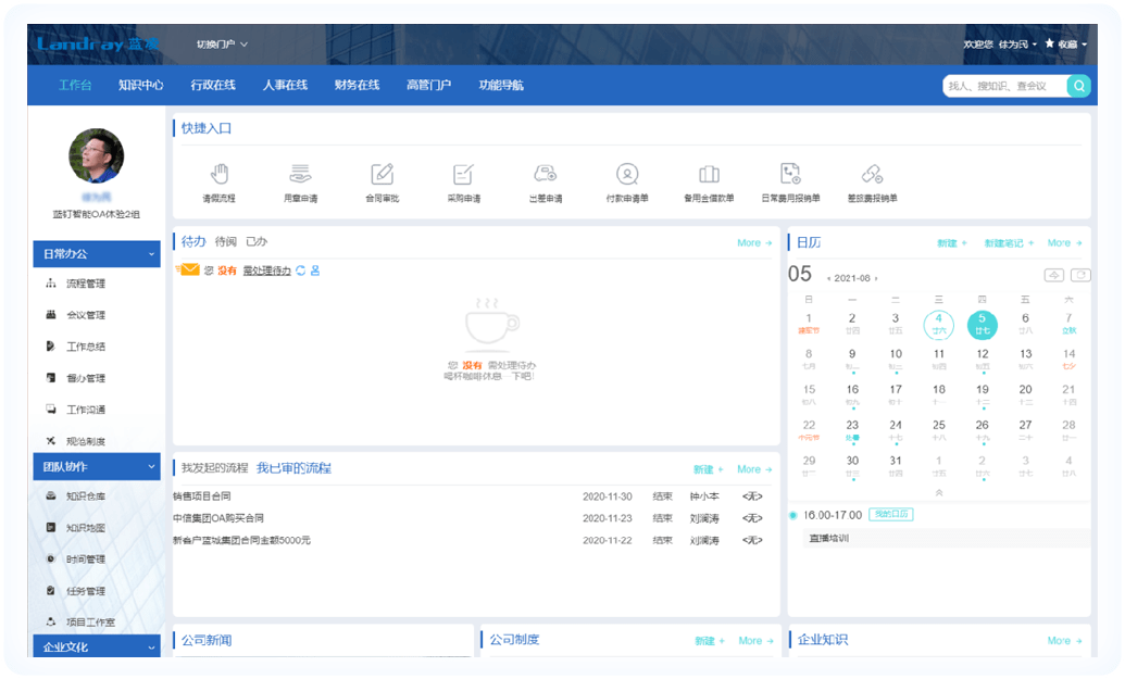 移動門戶、知識管理、流程管理、費用管控、信創(chuàng)辦公等一體化管理模塊提升企業(yè)內外協(xié)同水平和管理效率。