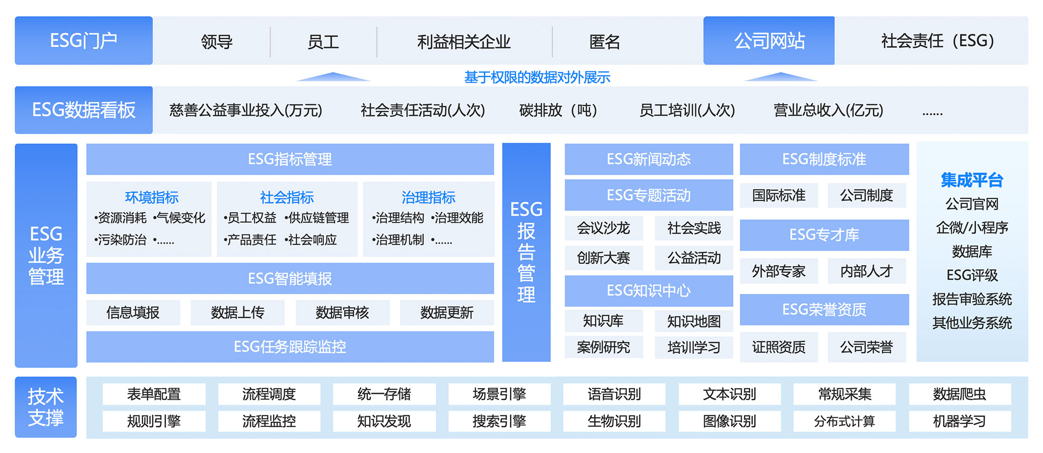 ESG體系中的公司治理涉及董事會(huì)、合規(guī)、風(fēng)險(xiǎn)等多領(lǐng)域的管理,企業(yè)數(shù)智化平臺(tái)較弱,難以支撐管理數(shù)字化升級(jí)和持續(xù)改善