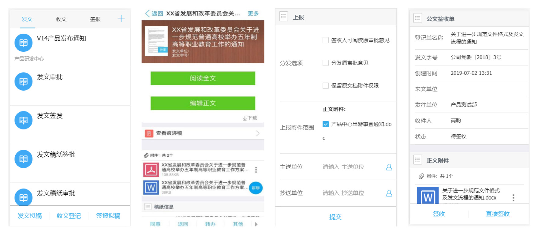 電子簽章、CA認證,支持在線簽署,在實現(xiàn)無紙化辦公的同時,讓部門發(fā)文少跑腿、更省力。