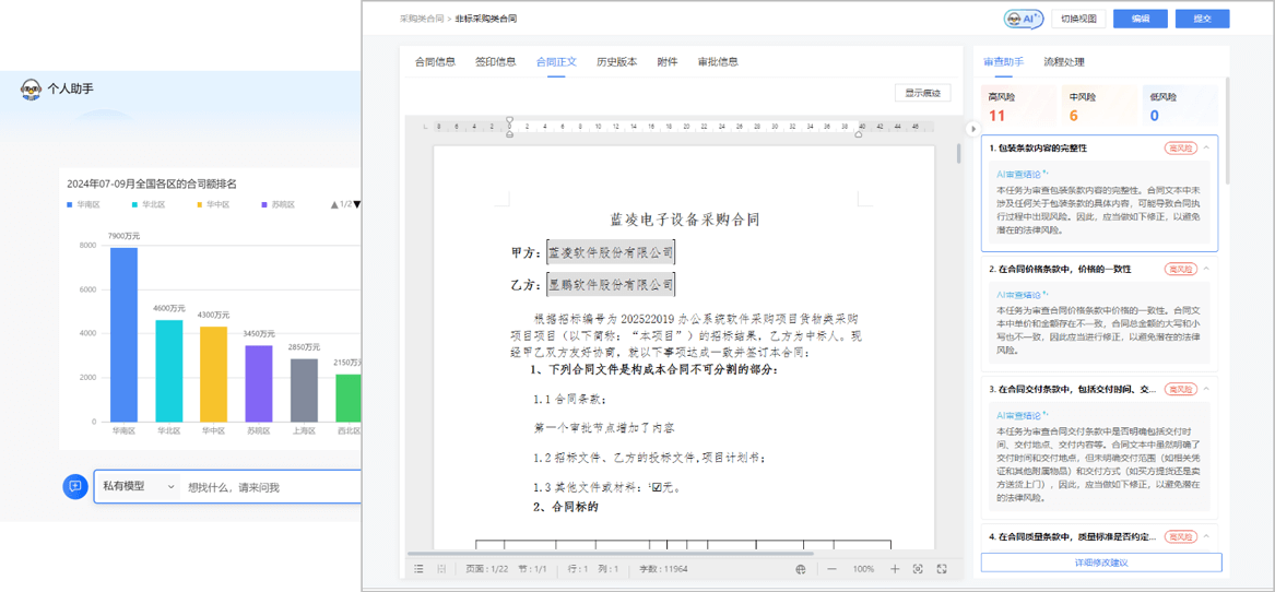 支持合同起草、審批、履約、結(jié)算全流程數(shù)字化管理,加速業(yè)財法融合;規(guī)范化、數(shù)字化合同管理體系,提升企業(yè)風(fēng)控及合規(guī)經(jīng)營水平