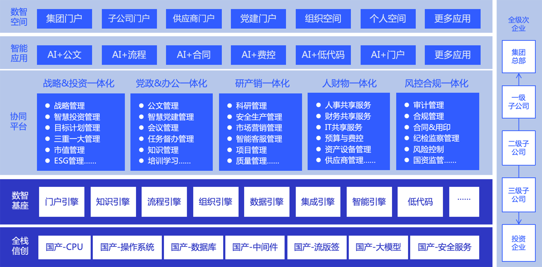 攜手藍(lán)凌打造集團公司、分(子)公司、直屬企業(yè)三級單位一體化辦公平臺,實現(xiàn)跨層級跨部門的業(yè)務(wù)協(xié)作,實現(xiàn)“文、會、事”及各類業(yè)務(wù)審批的“掌上通”