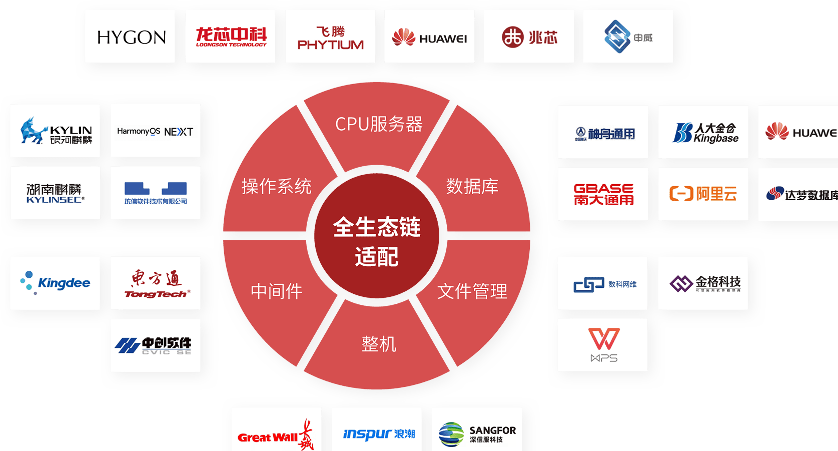 產(chǎn)品適配國產(chǎn)主流基礎(chǔ)軟硬件,覆蓋芯片、整機、操作系統(tǒng)、數(shù)據(jù)庫、中間件、瀏覽器、流版軟件、身份認(rèn)證、電子簽章等各個核心模塊