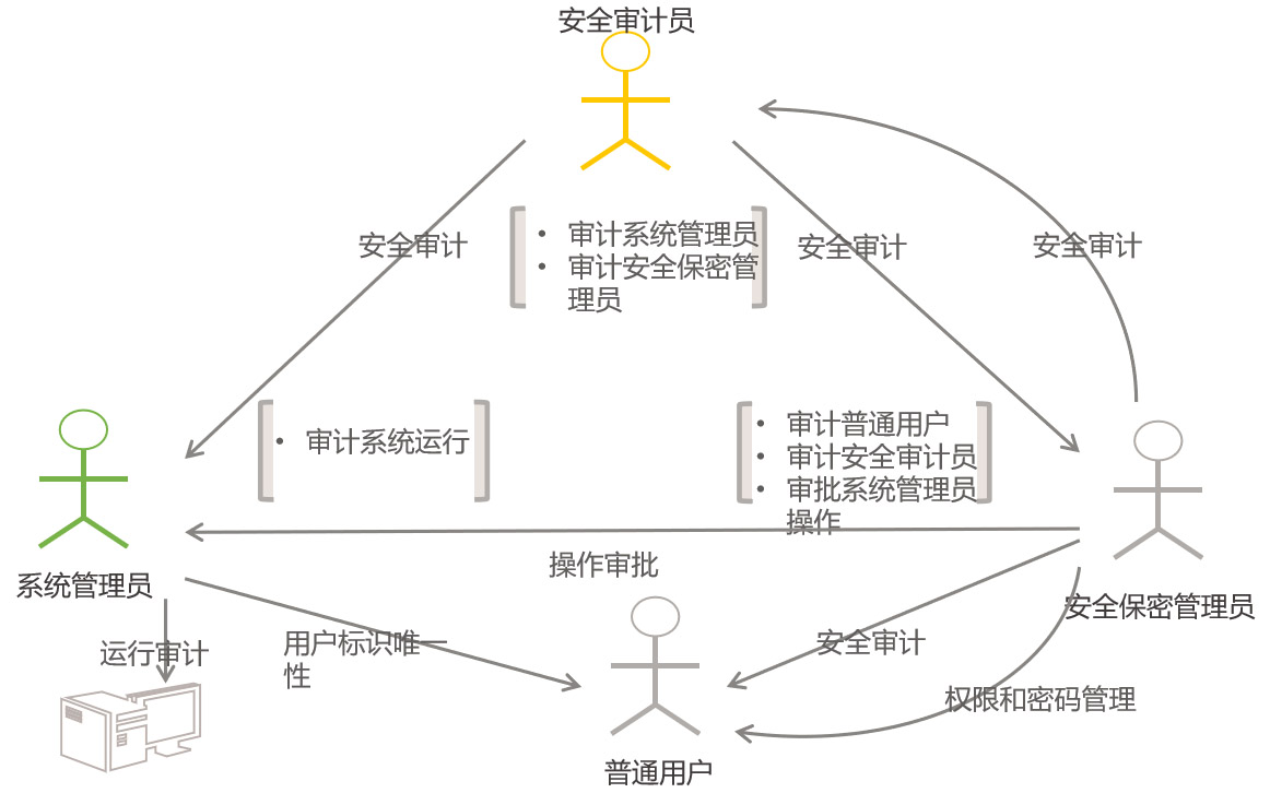 系統(tǒng)管理員:主要負(fù)責(zé)審計系統(tǒng)運行,并確保用戶標(biāo)識的唯一性