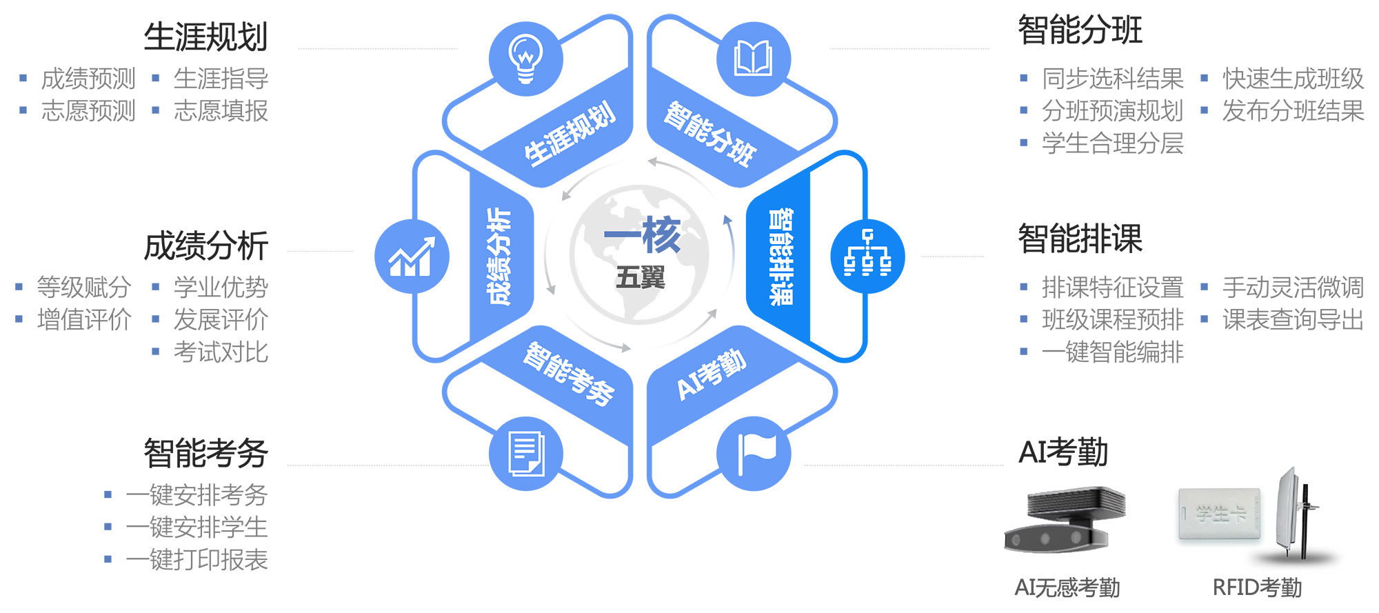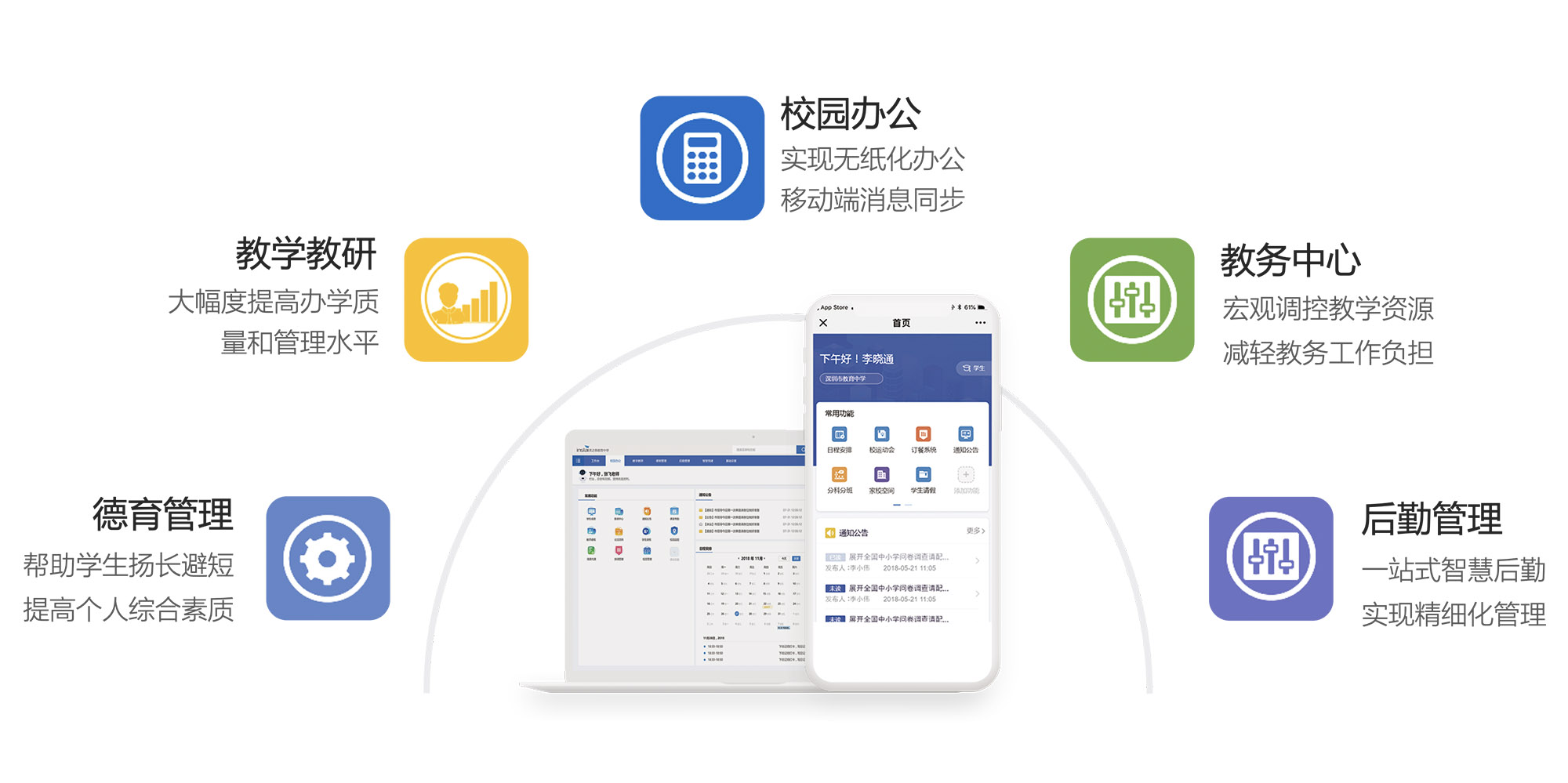 覆蓋學校管理層、職能部門所有日常工作,減輕管理者、教師、學生的負擔,實現(xiàn)人、財、物管理及工作流程的全面智慧化