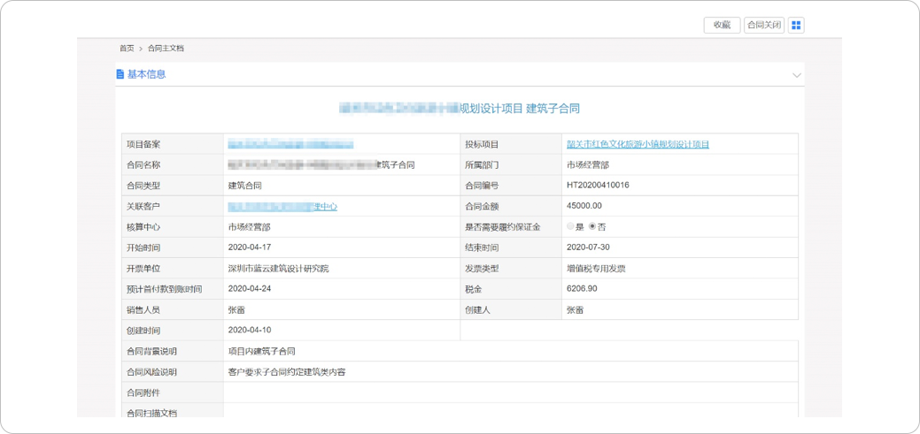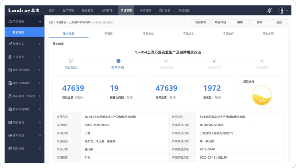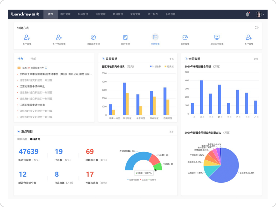 通過構(gòu)建招標、合同簽訂、項目開展、項目收款、項目結(jié)項的一站式管理,實現(xiàn)項目業(yè)、財一體化管理,提升管理精細化,支撐企業(yè)全國不斷拓展市場邊界和業(yè)務(wù)領(lǐng)域。