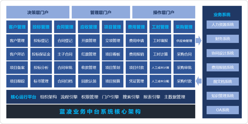 打造了一個從市場經(jīng)營、項目備案、投標、客戶臺賬、銷售、立項、策劃、交付、收款的閉環(huán)經(jīng)營運營系統(tǒng),通過經(jīng)營、運營一體化,將大大提升業(yè)務(wù)協(xié)同的效率。