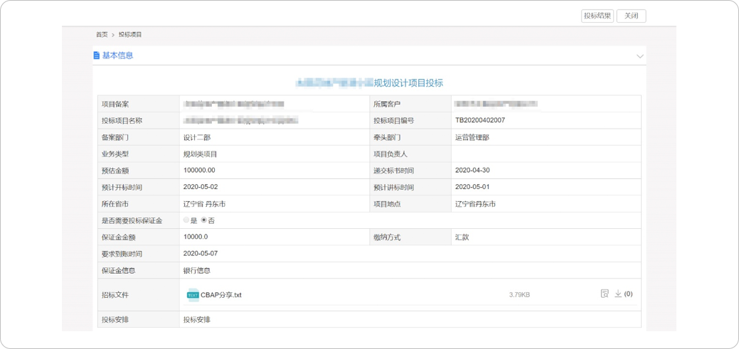 BMP投標管理模塊為銷售人員進行項目的投標工作提供一個操作的平臺,主要包括投標項目登記、審批、投后分析等,在線協(xié)作讓投標工作更及時、更高效,促進項目中標。