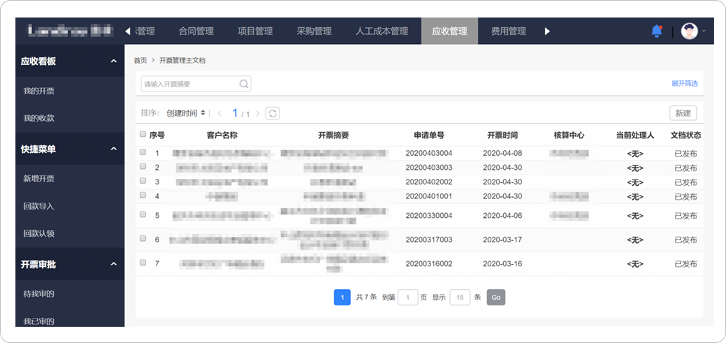 BMP提供了針對合同的收款計劃的開票、收款功能,同時提供合同的收款與項目收款的勾稽關(guān)系,能實時統(tǒng)計合同、項目對應(yīng)的開票收款情況,進而促進項目回款。