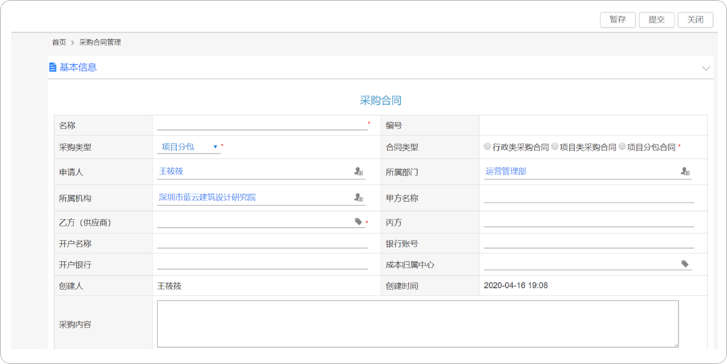 BMP提供包括供應(yīng)商管理、采購合同管理、采購付款管理等功能,支撐專業(yè)分包、勞務(wù)外包等采購合同的在線管理,讓采購流程更規(guī)范、采購執(zhí)行更高效、成本可控。