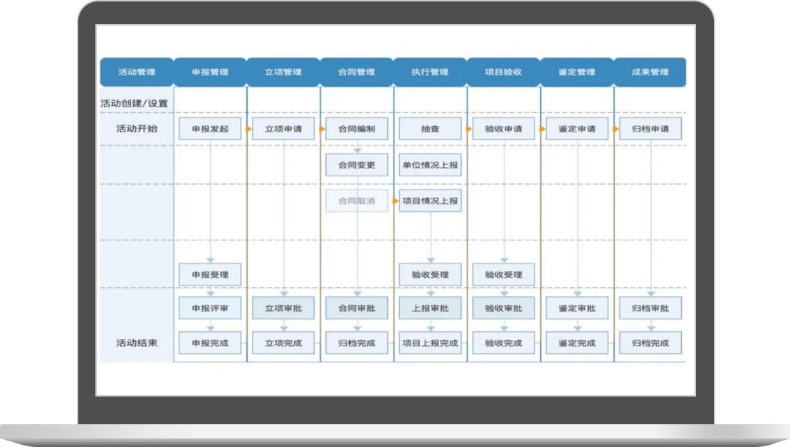從項目申報、立項、結(jié)項到歸檔的全過程在線管控,全程可追溯。