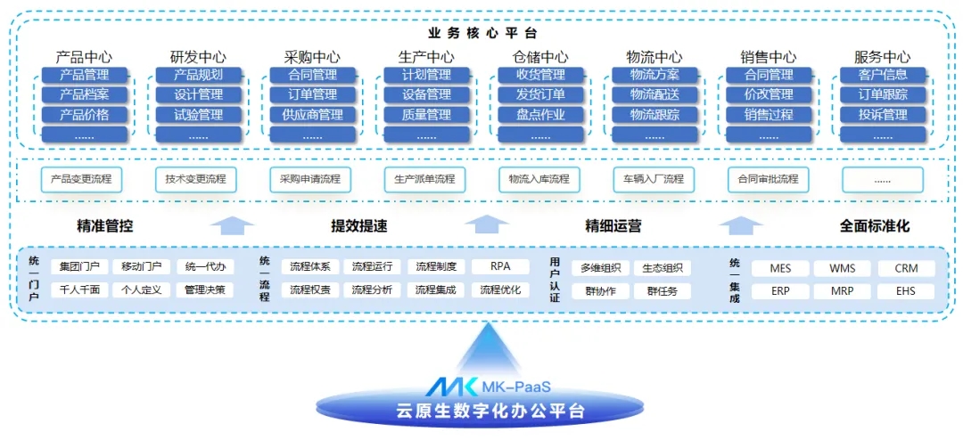 基于MK門(mén)戶、BPM流程等能力,構(gòu)建企業(yè)智能門(mén)戶、統(tǒng)一流程服務(wù)、智慧合同等平臺(tái),覆蓋四萬(wàn)員工,實(shí)現(xiàn)業(yè)務(wù)、辦公等領(lǐng)域端到端的高效協(xié)同。