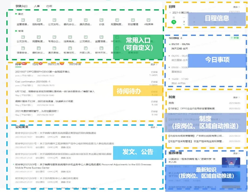 統(tǒng)一門(mén)戶平臺(tái)、流程平臺(tái),匯集信息與待辦,集成ERP、生產(chǎn)管理、CRM、財(cái)務(wù)等業(yè)務(wù)系統(tǒng),提升辦公協(xié)同效率。