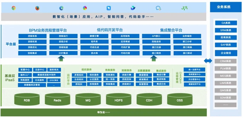 基于新的BPM流程中臺,實(shí)現(xiàn)與金碟EHR組織架構(gòu)同步,接入企微信,并集成SRM、招商等業(yè)務(wù)流程,賦能核心業(yè)務(wù)核心業(yè)務(wù)執(zhí)行更高效,數(shù)據(jù)互通,管理更智慧。