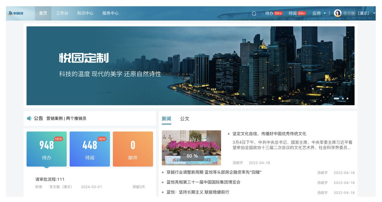 經(jīng)過持續(xù)建設與推廣,集團門戶已實現(xiàn)多業(yè)態(tài)推廣全覆蓋,包括集團總部、地產(chǎn)、物業(yè)、印力、美好家、嘉興事業(yè)部等,日均用戶訪問量超10萬次,助力審批省時10%。