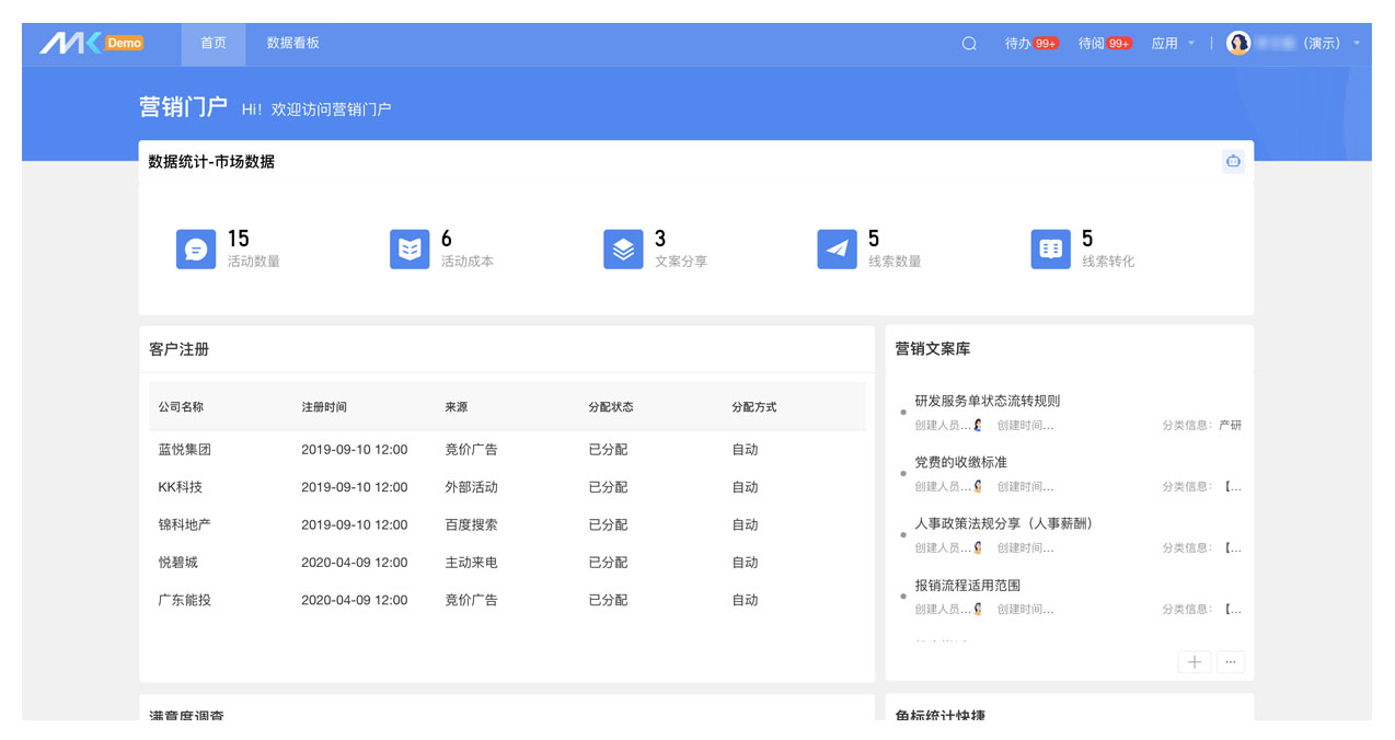 基于MK-PaaS構建高管、中層、員工等多角色工作門戶,完成1052萬條消息數(shù)據(jù)遷移;系統(tǒng)平均每天接收待辦2萬+,在性能提升的同時,保障了在線辦公的高效