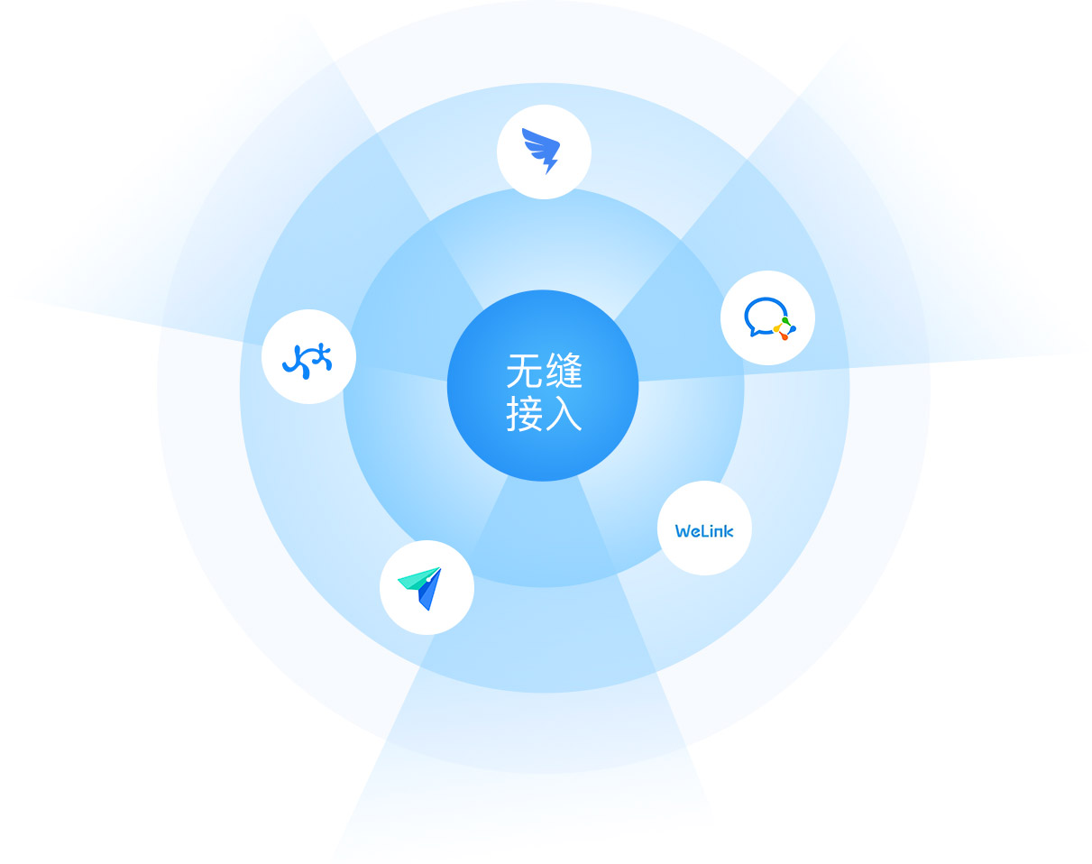 無縫接入釘釘、企業(yè)微信、飛書、WeLink等,統(tǒng)一移動入口,體驗更便捷