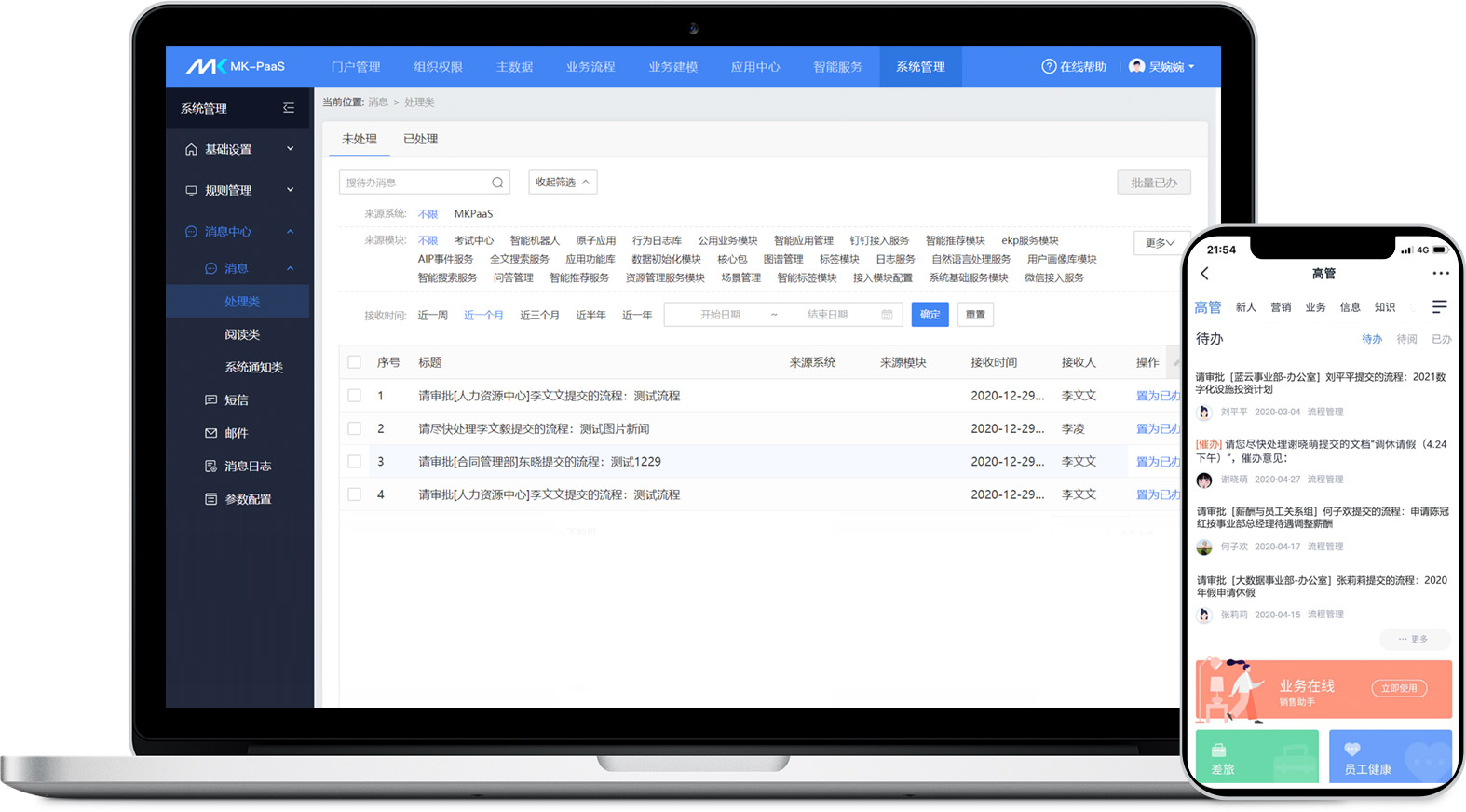 統(tǒng)一消息集成接口,一鍵實(shí)現(xiàn)第三方應(yīng)用系統(tǒng)與企業(yè)微信、釘釘、飛書等的消息集成,讓OA、HR等各類應(yīng)用基于移動(dòng)端統(tǒng)一推送消息,方便待辦待閱移動(dòng)化集中處理