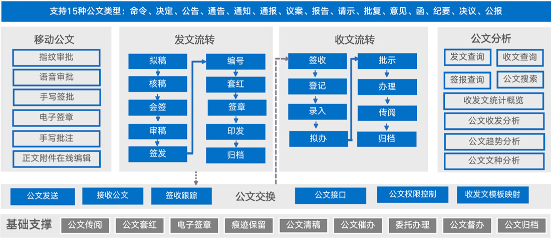 在線擬稿收文、發(fā)文、交換、移動(dòng)簽批,讓政令高效流轉(zhuǎn),輔助工作高效開(kāi)展