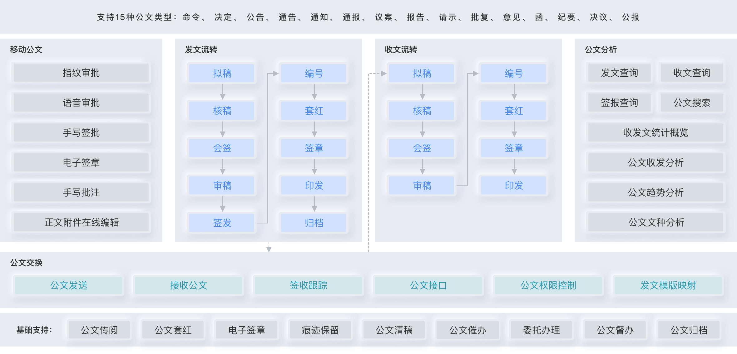 多部門(mén)“文、會(huì)、事”,一網(wǎng)通辦,讓工作人員少跑腿,各類(lèi)事務(wù)更規(guī)范,無(wú)紙化辦公更環(huán)保,打造高效高效數(shù)字政府。