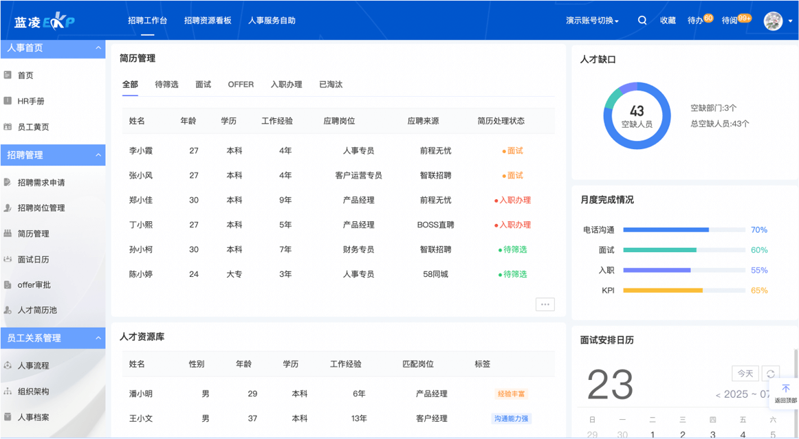 聯(lián)動其他業(yè)務模塊,讓業(yè)務場景前后打通,實現(xiàn)招聘、入職、賬號開通、培訓、考核、轉正的全程數(shù)字化 。