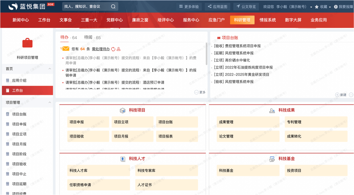 覆蓋科技人才、科技項目、科技基金、科技成果等全周期線上管控,保證科研過程的規(guī)范化、精細化